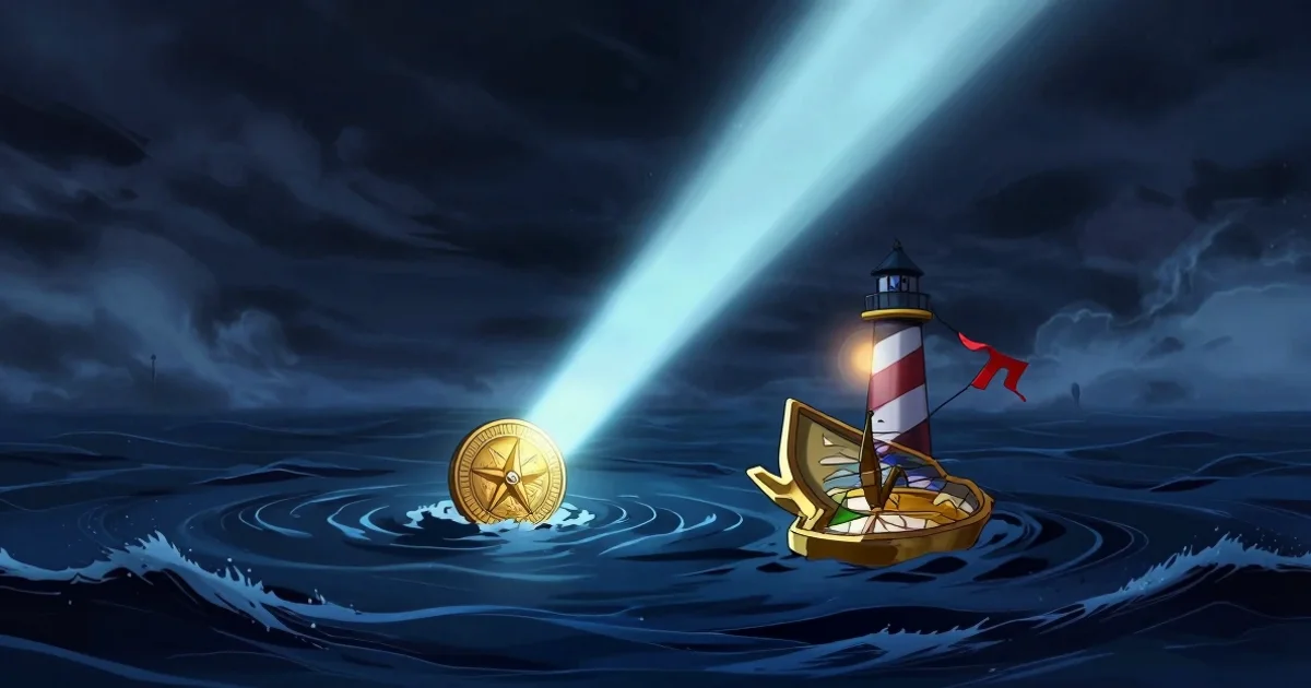Image Prompt: Anime style illustration depicting a majestic, yet slightly melancholic, blue-grey whale navigating a turbulent, dark sea. In the distance, a single, bright lighthouse cuts through the storm, symbolizing the strategic investment opportunity presented by Mowi's acquisition. The overall mood is one of calculated risk and quiet determination.